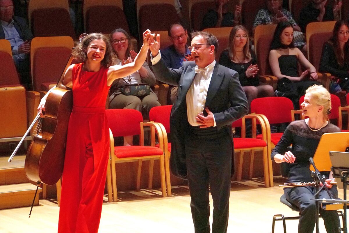 Poznańscy Filharmonicy kończyli gościnnie tegoroczny Gdański Festiwal Muzyczny. Pod batutą Marka Pijarowskiego zagrali w pierwszej części wieczoru błyskotliwy Koncert na wiolonczelę i orkiestrę dętą Friedricha Guldy. Solistką wieczoru była świetnie nam znana Anastasia Kobekina. Zagrała jak to ona - porywająco, elegancko, z szelmowskim zacięciem. Na bis zaproponowała z towarzyszeniem Grzegorza Sieka (szefa naszej sekcji perkusji) - utwór swego taty, Vladimira Kobekina – Gallardo (Variations on an Ancient Theme) na wiolonczelę i tamburyn. To dopiero była zabawa. Zresztą spójrzcie na zdjęcia z Ołowianki. Aplauz po ostatnim akordzie kilka razy przywoływał na estradę dwoje muzyków. Ich ukłony frunęły ku widowni z humorem i wdziękiem. Brawa na stojąco!
