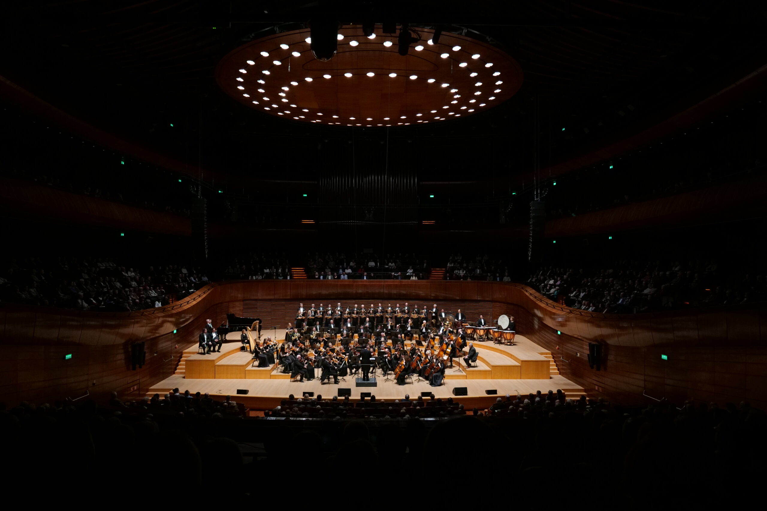 Zaczyna się koncert. Trzymamy mocno kciuki za naszych muzyków. Łukasz Borowicz wybrał program z rzadko wykonywanymi i bardzo różniącymi się utworami. Nadto przewrotnie ustawił je w odwrotnej chronologii. Na początek pięcioczęściowy Koncert na wiolonczelę i orkiestrę dętą (1980) Frierdicha Guldy, austriackiego pianisty i bulwersującego ekscentryka. Po przerwie Uwertura komediowa (1952) Tadeusza Szeligowskiego, założyciela i patrona naszej Filharmonii, a w finale Lelio (1832) – dramat symfoniczny Hectora Berlioza, mistrza mocno wówczas pogubionego w pomysłach muzycznych, autobiograficznych i teatralnych. Obok orkiestry Filharmonii Poznańskiej na estradzie NOSPR wystąpił Chór Mieszany Filharmonii Krakowskiej oraz soliści: Chinka Hayoung Choi (wiolonczela), Andrzej Lampert (tenor), Szymon Mechliński (baryton) i Jerzy Radziwiłowicz (narrator).