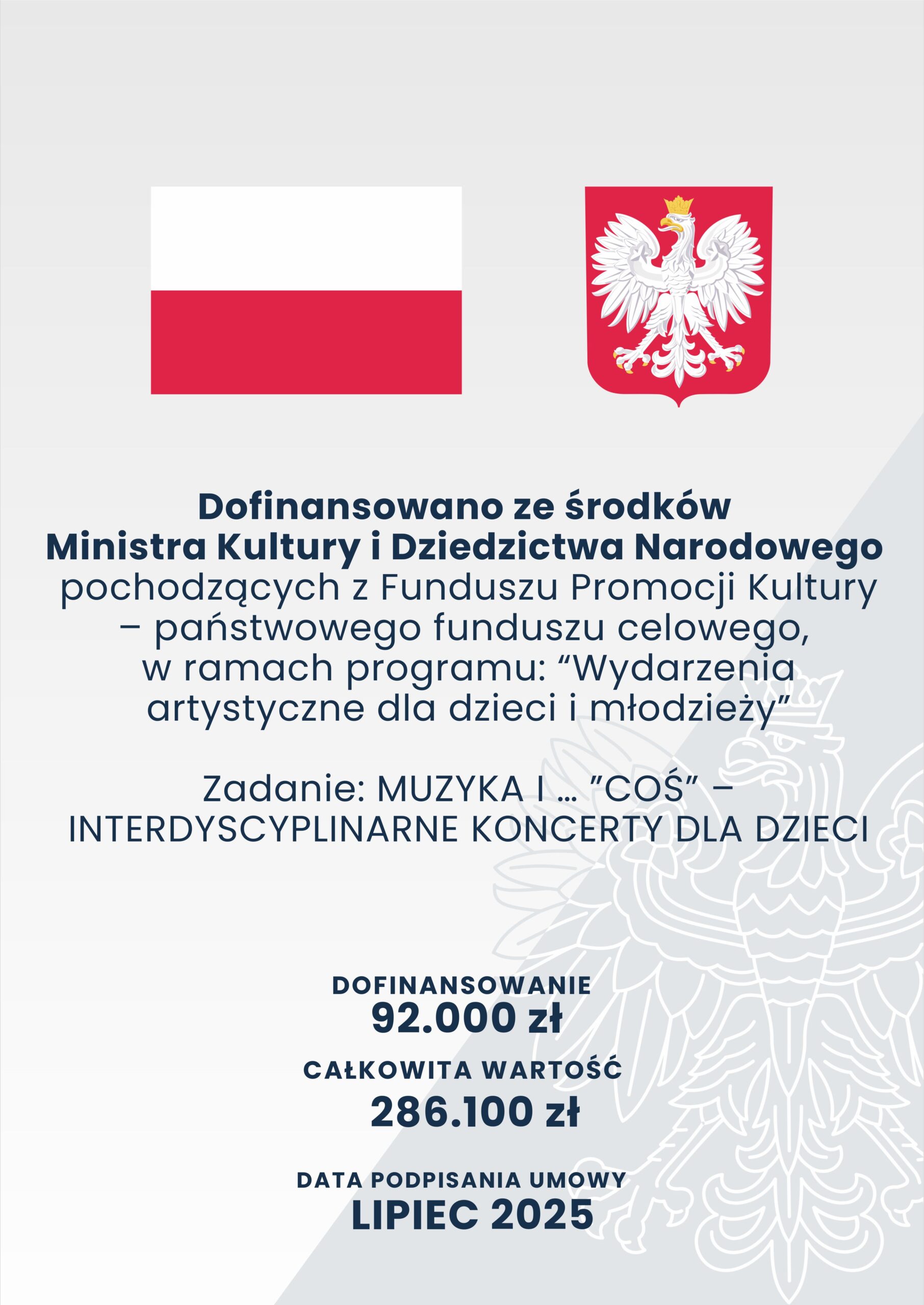 „Dofinansowano ze środków Ministra Kultury i Dziedzictwa Narodowego pochodzących z Funduszu Promocji Kultury w ramach programu „Muzyczny ślad”